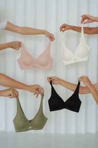 BARE FIT is the ideal home bra. Sizes M to XL are available and it is seamless also wireless. They will keep you comfortable all day long!