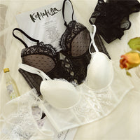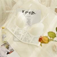This romantic bustier in sheer mesh and delicate floral lace features corset-style detailing at the front, plus boning throughout for shape and structure — wear it in or out.