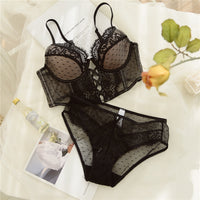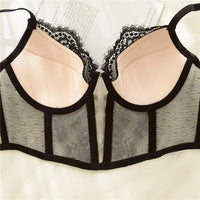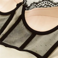 This romantic bustier in sheer mesh and delicate floral lace features corset-style detailing at the front, plus boning throughout for shape and structure — wear it in or out.