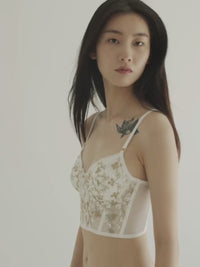 This classic corset top is blooming with our signature floral pattern expanded with golden branches embroidery, perfected with a flexible boning provides shape and structure. that creates a feminine look.