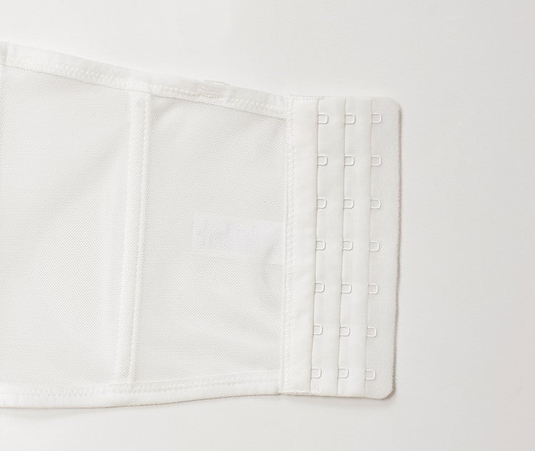 The back of the bustier is finished with a sheer mesh fabric, creating that dreamy see through effect.